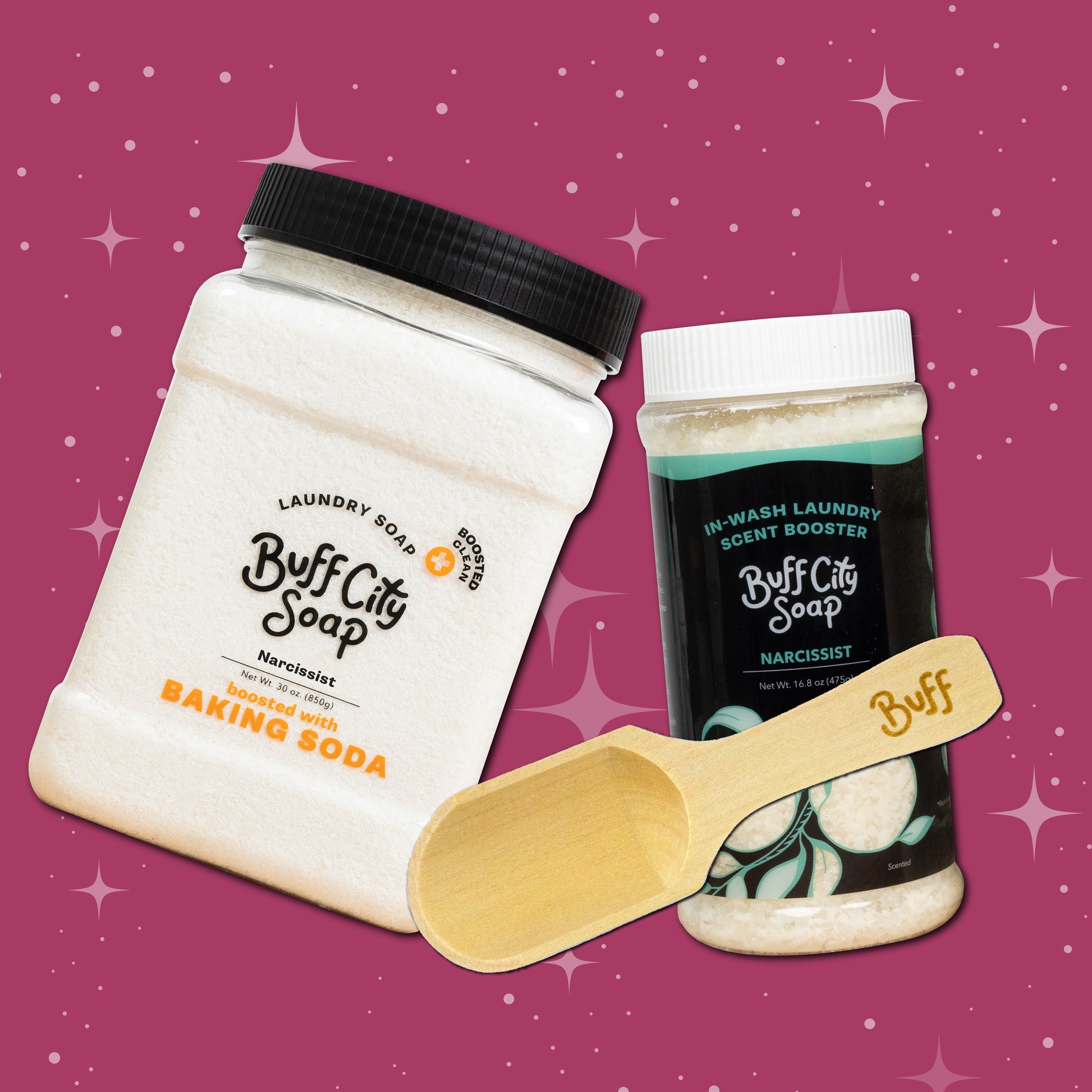 Narcissist Boosted Laundry Day Gift Set Plus up laundry day with Laundry Soap you want to gift! Each Boosted Laundry Day Gift Set includes 1 Laundry Soap+, 1 Laundry Scent Booster, & 1 Wooden Scoop.